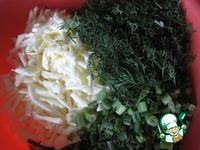 Сырки натираем на крупной терке, лук и укроп измельчаем, перемешиваем. |