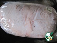 Заворачиваем рулетом и кладем в пакет для запекания и сворачиваем конфеткой, чтобы рулет не раскрылся, запекаем 50 мин при 190* |