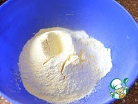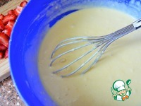 В сухую смесь вылить яично - маслянную, влить молоко, тщательно смешать. |