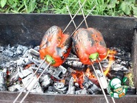 Перцы моем, обсушиваем. Нанизываем на двойные шампуры Forester и обугливаем со всех сторон над пламенем. Можно запечь перцы в духовке. |