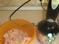 Куриную грудку и лук "перемолоть" с помощью блендера |