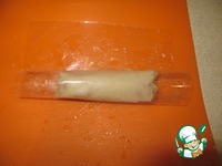С помощью рукава для запекания сформировать колбаски и завязать с двух сторон ниткой. |