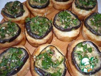 На каждый ломтик багета выкладываем кружок замаринованного баклажана. Приятного аппетита! |