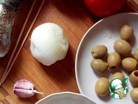 Оливковое масло смешиваем с измельченным чесноком, солью, приправой. Лук нарезать дольками, помидоры четвертинками (можно взять черри - их резать не надо) |