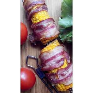 Оборачиваем початки кукурузы беконом. Жарим над углями, периодически переворачивая, минут 15 |
