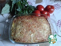 Теперь добавляем куриный фарш. И хорошенечко еще раз вымешиваем. Полученную массу выкладываем в смазанную растительным маслом. У меня 1,5 литровая форма. И ставим в духовку выпекать. |