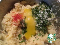 Растолочь картофель в пюре, вмешать масло, сливки и сметану. Добавить паприку, корицу, петрушку, чеснок. Вмешать желтки. |