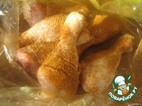 Куриную голень обсыпаем приправой, перемешиваем и убираем в рукав. |