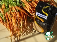 Трудоемко, конечно, такого размера морковку чистить, но оно того стоит. Впрочем, можно взять морковь нормального размера, только её нужно будет нарезать на ломтики вдоль. |