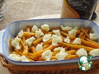 Далее карамелизированную морковь выкладываем в жаропрочную посуду. |