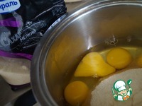 В сухую кастрюлю с толстым дном разбиваем яйца и всыпаем к ним сахар. |