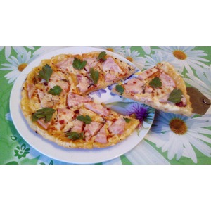 Описание: Эта пицца готовится быстро, получается хрустящая, а с начинкой можно экспериментировать сколько угодно! ))