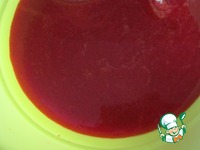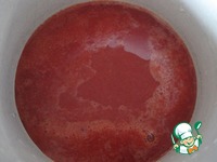 Готовим сироп для подачи лапши. Свежевыжатый сок клубники соединяем с сахаром доводим до кипения. |