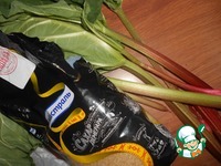 Нарезать очищенные стебли и молодые листочки ревеня, перемешать с тростниковым сахаром Демерара. |