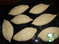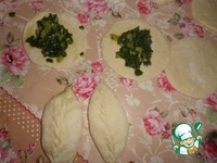 Тесто раскатать на припыленной мукой поверхности, вырезать из теста кружочки, выложить на них по 2 ч. л. начинки. Защипнуть пирожки. |