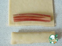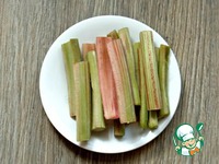 Тем временем вымыть и очистить ревень от верхней кожицы. Нарезать на куски 6-7 см. |