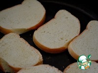 Поджариваем тосты - тостер мой погиб отважно много лет назад. Подрумяниваю хлеб на сухой сковроде |