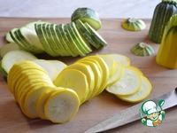 Нарезать кружочками тонко. Чем тоньше, тем быстрее готовятся. |