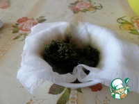 С помощью марли, сложенной вчетверо, отжимаем сок из измельченной мяты. Нам потребуется 3 ст. л. мятного сока. |