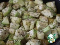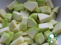 Кабачок очистить от кожуры, порезать небольшим кубиком, присолить и перемешать. |
