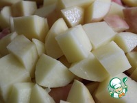 Картофель очистить от кожуры и порезать небольшим кубиком |