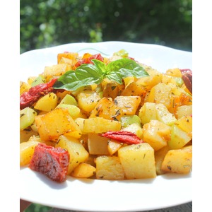 Описание: Жареная картошка - блюдо тяжелое, а вот добавив кабачка, мы сделаем блюдо намного легче! Да, да, именно так, Америку не открыла но возможно кому-то пригодится - очень простое, но очень вкусное блюдо с итальянскими нотками и вкусом. Для меня - основное, для мужа как гарнир. Сейчас сезон кабачков и в этом блюде они очень к месту - благодаря быстрому обжариванию, они не размягчаются, а остаются слегка упругими, картошечка же наоборот - нежная и мягкая, все это с итальянскими специями - это очень вкусно!