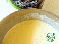 Взбить яйца со 100 г сахара "Универсальный" от "Мистраль" и сметаной. Ввести остывший заварной крем и перемешать. |