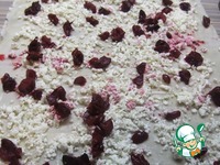 По всей поверхности равномерно распределить творог и ягоды (любимые с грядок). |