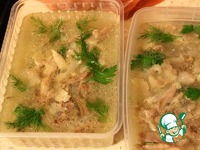 Залить горячим бульоном так, чтобы он полностью покрывал мясо. Остудить и убрать в холодильник на ночь. |