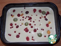 Выложить тесто в смазанную маслом форму, сверху разложить ягоды. Выпечь в разогретой до 180С духовке, 30-35 минут. |