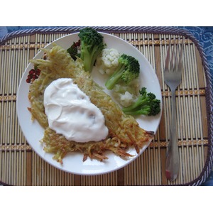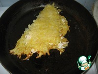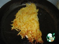 Выкладываем картошку в виде блина на сковородку. Жарим 2-3 минутки. |