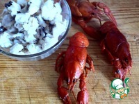 Отварную рыбу нарезать кубиками или разобрать на волокна. Очистить отваренных раков. |