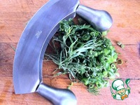 Мелко нарубить зеленый лук, укроп и эстрагон. |