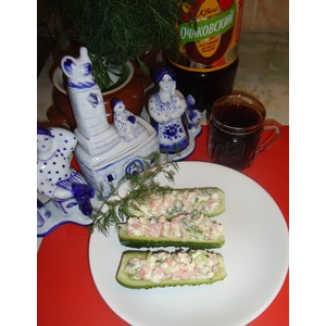 Начинить приготовленной смесью огурчики. Угощайтесь! |
