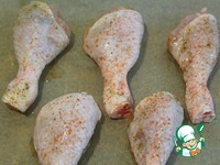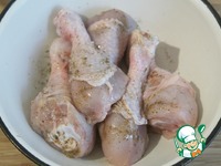 Куриные голени вымыть, обсушить, влить 2 ст л растительного масла, добавить смесь перцев по вкусу и соль. Перемешать и оставить на 10 минут. |