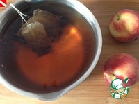 Уменьшить огонь, опустить в кастрюлю кусочки персика, снова довести до кипения, выключить огонь и оставить на полчаса. |