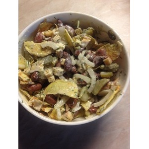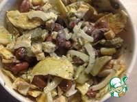 Описание: Летом мне часто хочется каких-нибудь салатиков, закусок, бутербродов. Вот и сегодня придумался новый рецепт салатика с фасолью и домашними картофельными чипсами. Попробуйте!