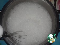 Теперь в глубокой миске, а лучше в кастрюле, смешиваем яйца, сахар и соль. Взбиваем до густой пены. |