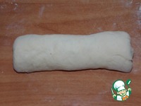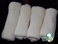 Тесто разделить на 4 части, раскатать, на один край насыпать сахар. |