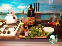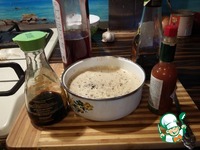 Квас переливаем в кастрюлю и ставим на огонь. Нагреваем его градусов до 40-60, но ни в коем случае не кипятим. Вливаем уксус, соевый соус, табаско, соль и все тщательно перемешиваем. |