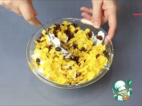 Добавить кукурузные хлопья и изюм. Снова хорошо перемешать. Ложкой выложить на лист, устеленный пергаментом. Выпекать при 110-120˚C 40-50 минут. Смотрите по своей духовке. |