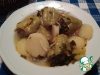 Описание: Этот рецепт родился благодаря жаре, которая у нас уже началась, и моей нелюбви к пенке, которую надо снимать в процессе готовки. Вот я и решила приготовить перчик по-новому, а именно, по принципу дымлямы - когда все овощи и мясо закладываются слоями, накрываются крышкой и томятся пару часов. Также, по совету Людмилы yugai ludmila65, я положила в фарш томатную пасту, о чем не жалею. И еще, я давно мечтала приготовить перцы, которые стоят в кастрюле, а не лежат, даже после варки, и у меня это получилось!