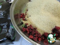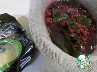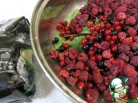 В кастрюлю выложить листья вишни и ягодное ассорти. |