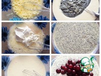 В миске взбиваем 3 яйца с 2 ложками сахара, добавляем 400 грамм сметаны, взбиваем. Добавляем маковую смесь и все перемешиваем. Отправляем вишню в начинку. |