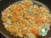 Лук и морковь почистить. Лук мелко порезать, морковь натереть на терке и поджарить до золотистого цвета на растительном масле. Помидоры обдать кипятком, очистить от кожуры и тоже нарезать слайсами. |