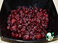 Замороженную клюкву достать из морозилки. Полностью размораживать не нужно, пусть слегка оттает, пока готовится тесто. |