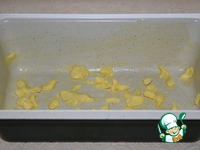 Сливочное масло порубить ножом и распределить по дну формы (размер формы 23х12). Обязательно смазать и стенки формы маслом. |