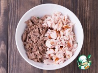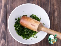 1. Лук и укроп мелко порезать и с помощью толкушки хорошо растереть с солью для большего аромата. |