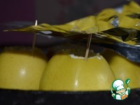 Сверху при помощи зубочисток прикрепить фольгу, так, чтобы она не касалась яблок. Поставить в духовку на 35-40 мин при температуре 175 градусов. |
