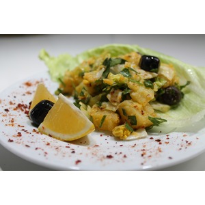 Описание: Часто в Турции этот салат готовят как основное блюдо для обеда или ужина. В составе есть листья салата, яйца, петрушка, зеленый лук, черные оливки, а также добавляют острый красный перец и заправляют обильно оливковым маслом.